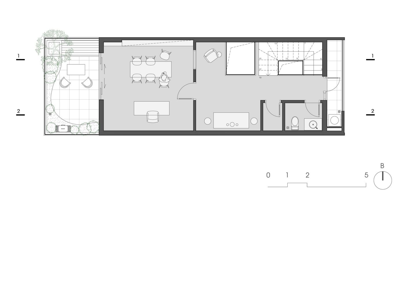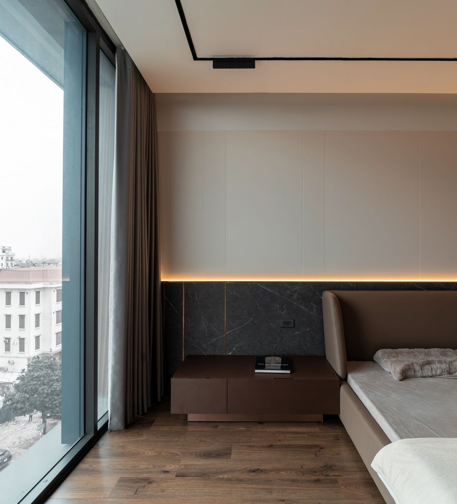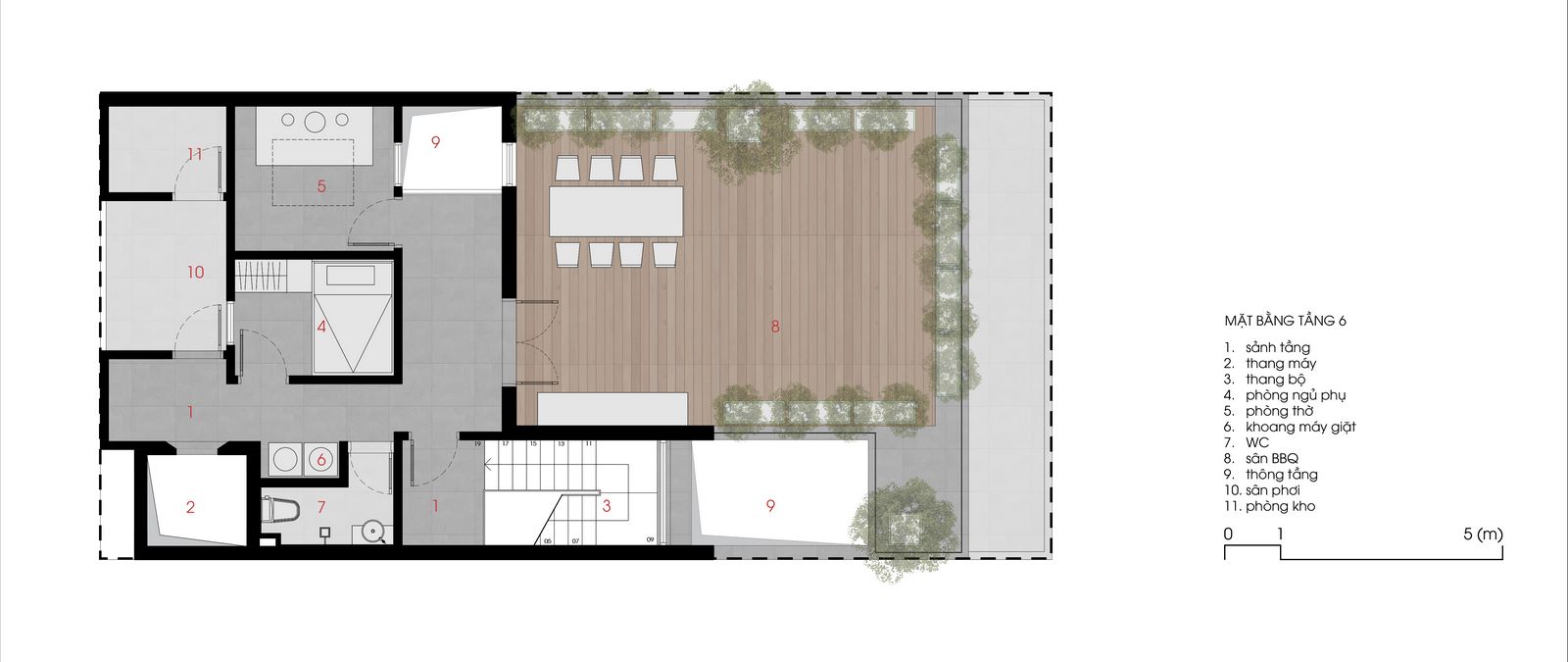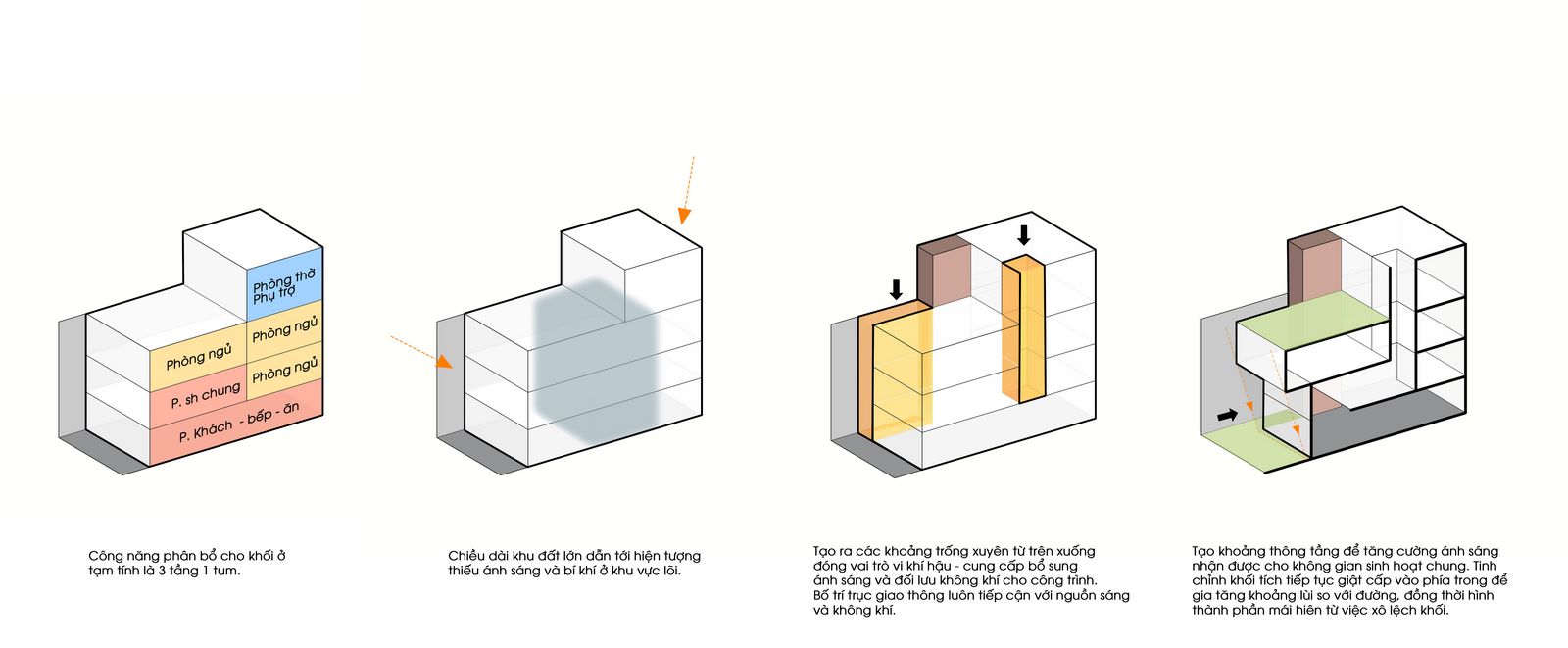 Bằng việc phân bổ các chức năng theo tỉ lệ phù hợp với nhu cầu sử dụng để có một khoảng ban công lùi 3m đủ cho khối sinh hoạt tách ra khỏi ô nhiễm đô thị. Kết hợp với đan cài thêm yếu tố cây xanh là cách mà chúng tôi cải thiện chất lượng sống của chủ nhà.