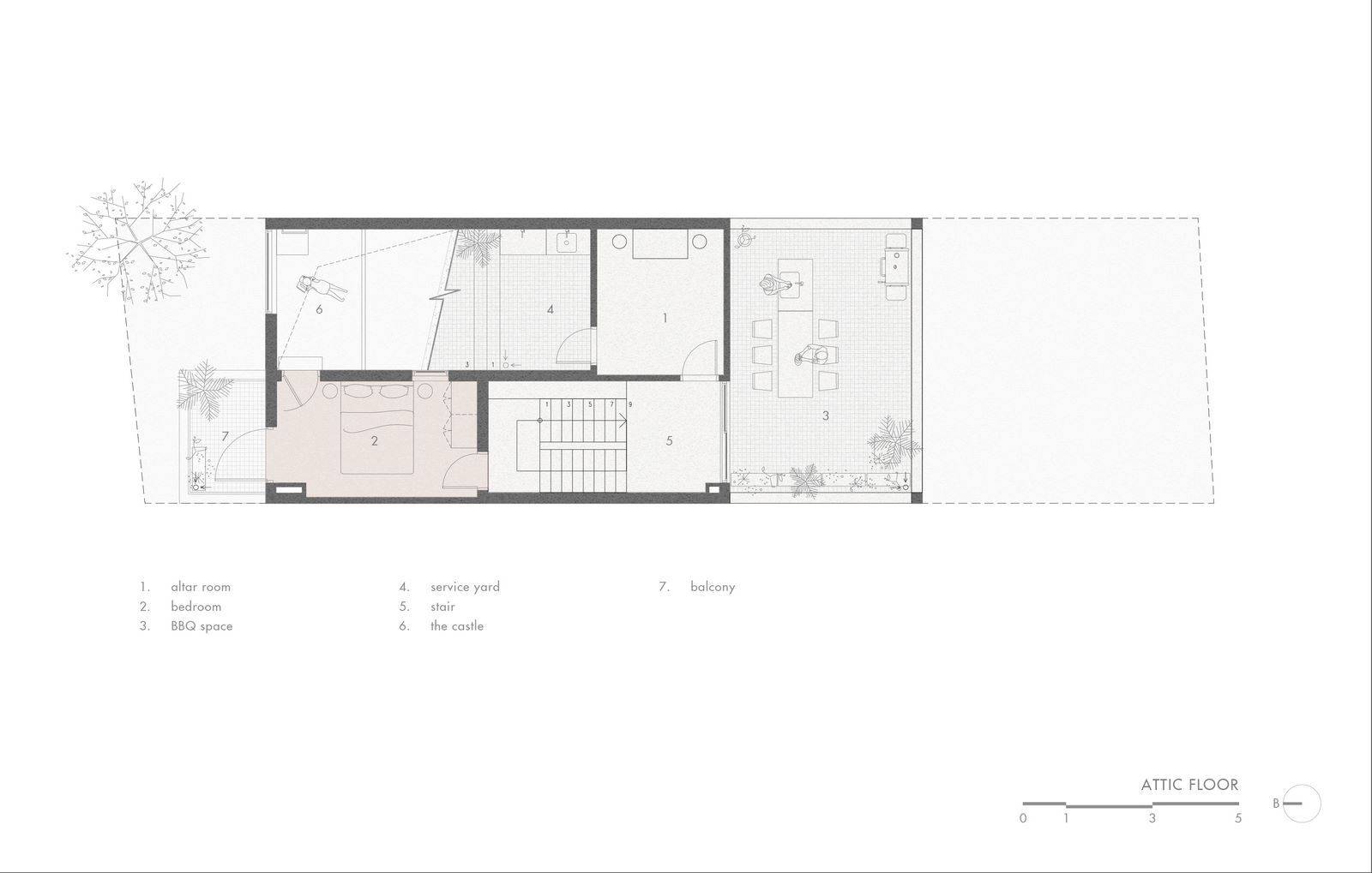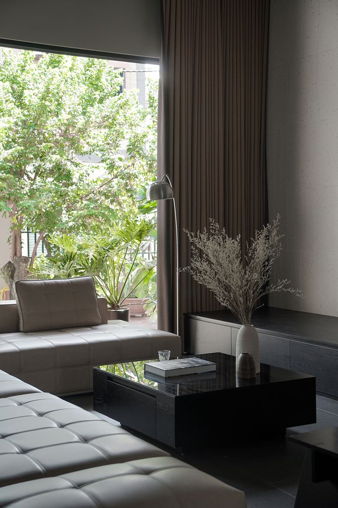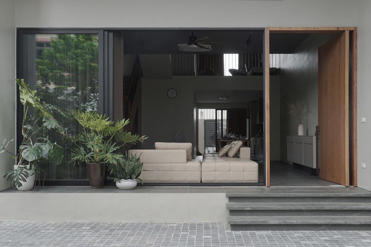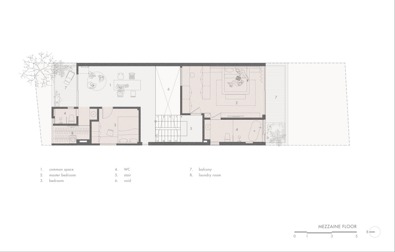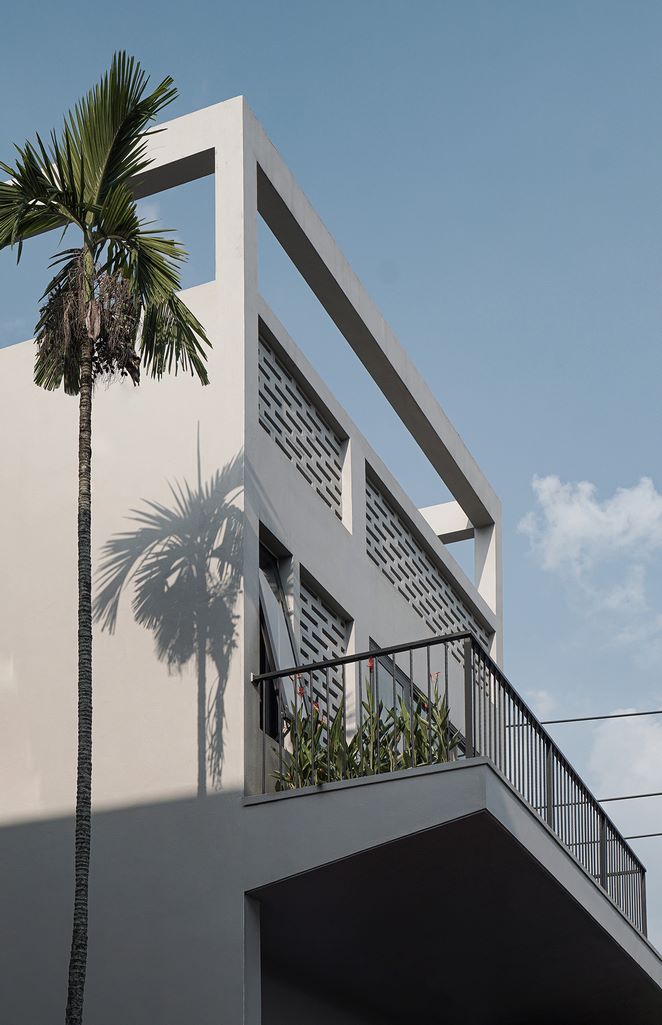 Bằng việc phân bổ các chức năng theo tỉ lệ phù hợp với nhu cầu sử dụng để có một khoảng ban công lùi 3m đủ cho khối sinh hoạt tách ra khỏi ô nhiễm đô thị. Kết hợp với đan cài thêm yếu tố cây xanh là cách mà chúng tôi cải thiện chất lượng sống của chủ nhà.