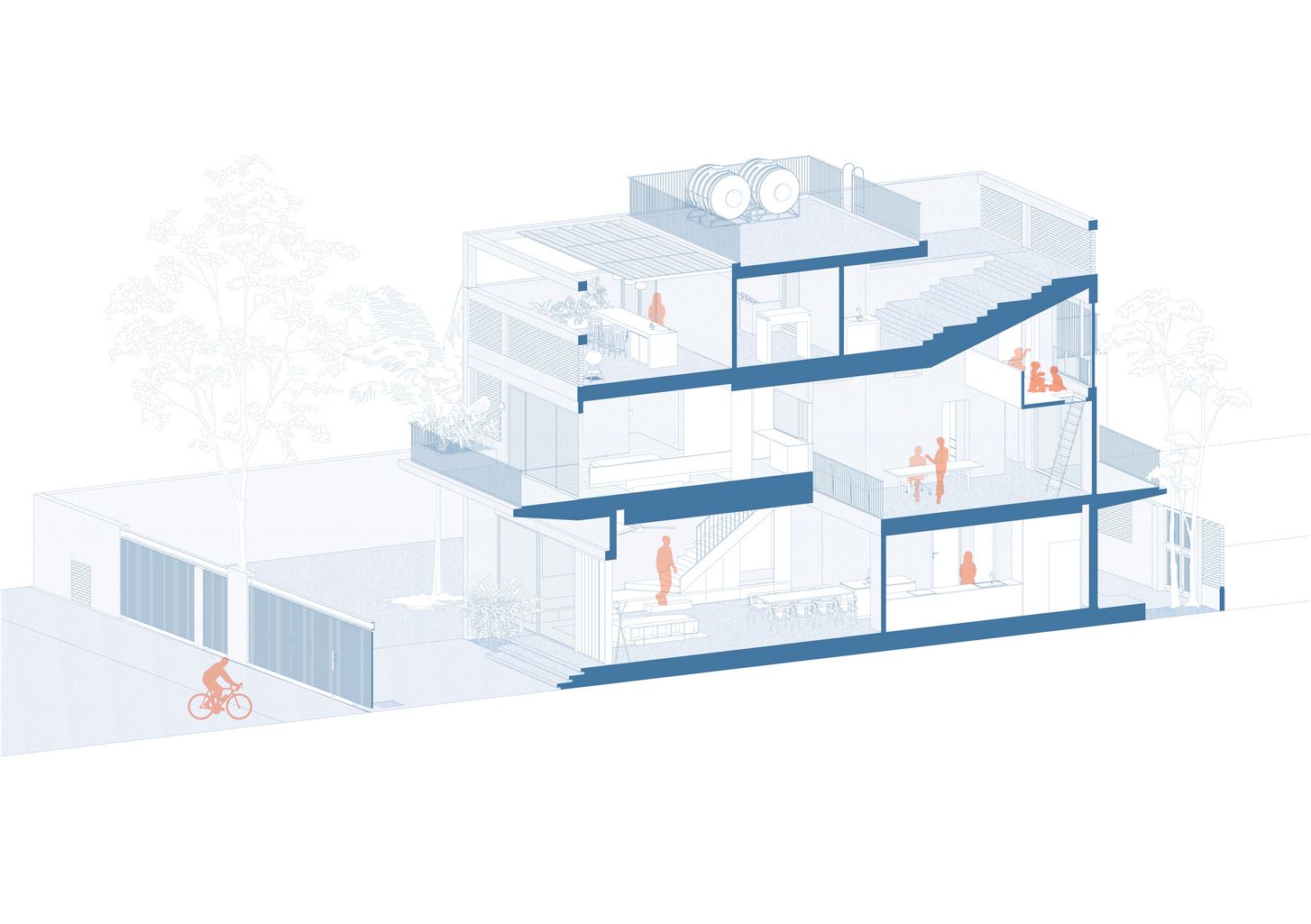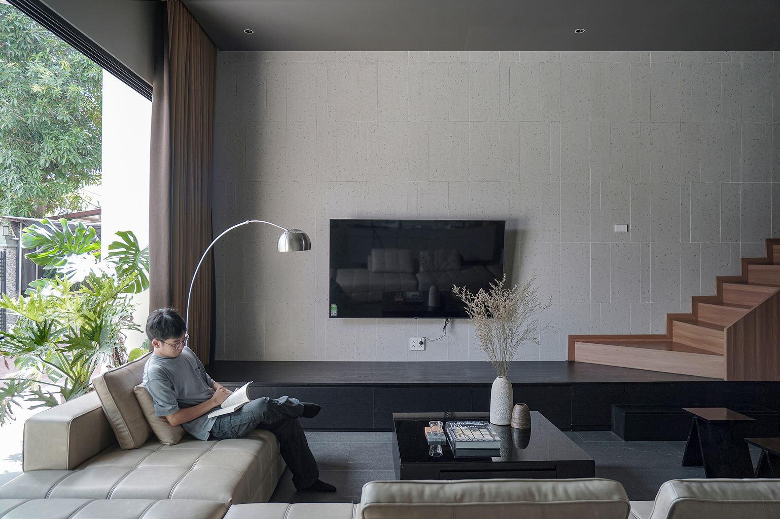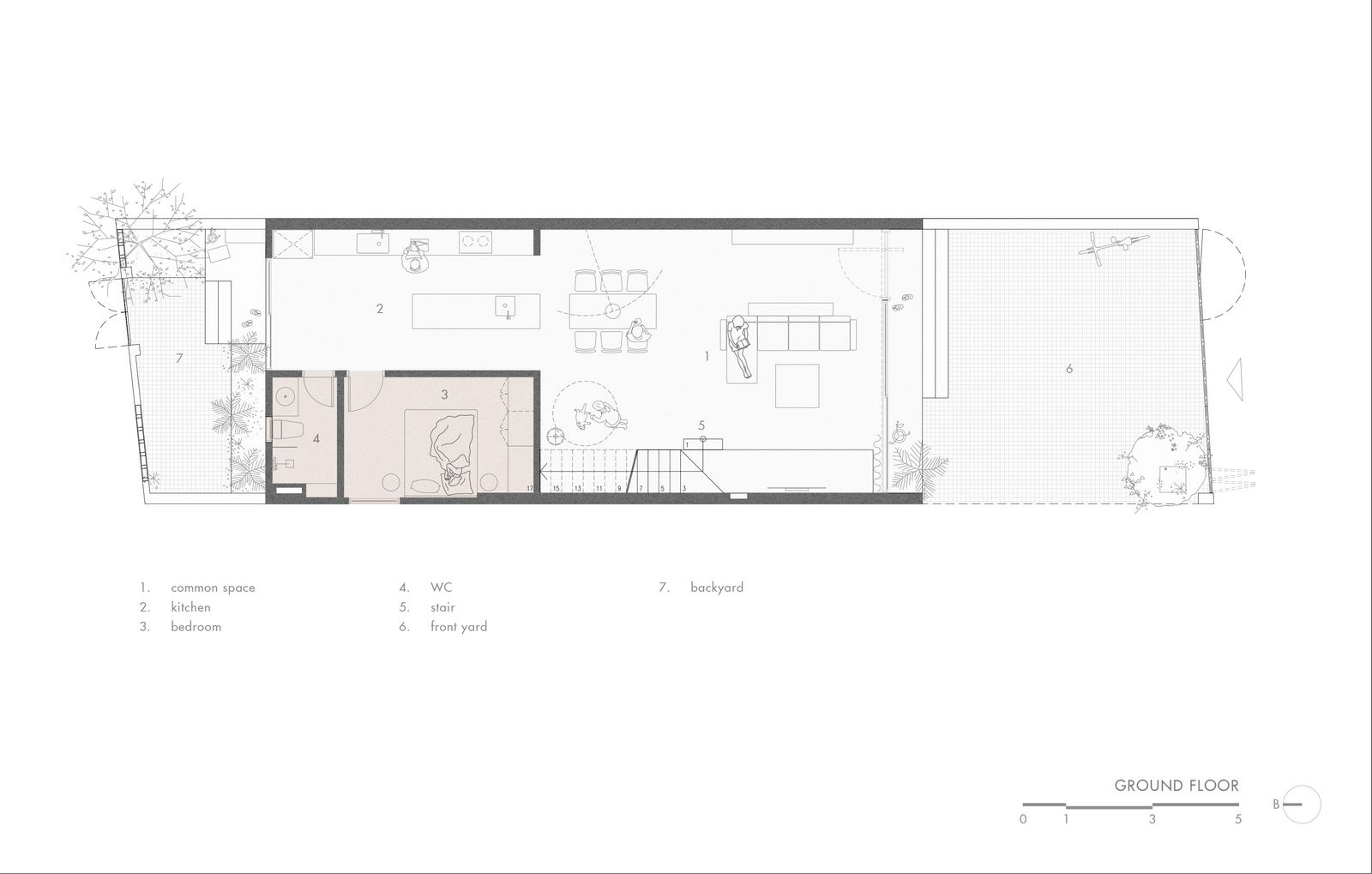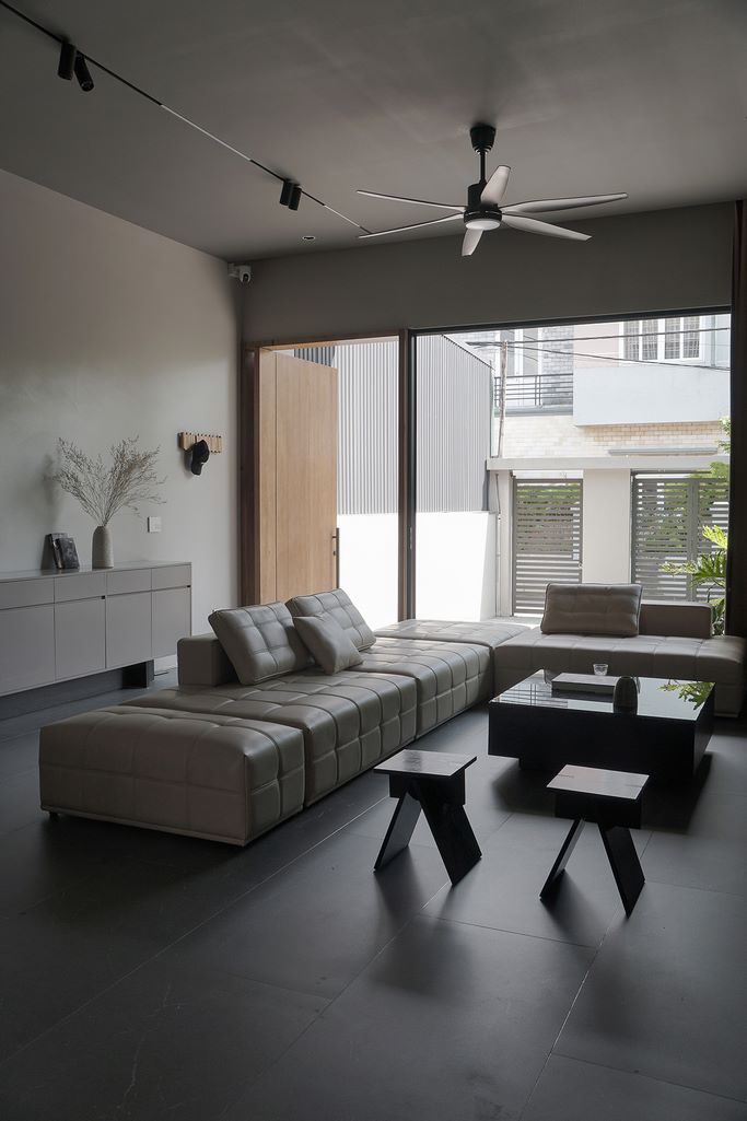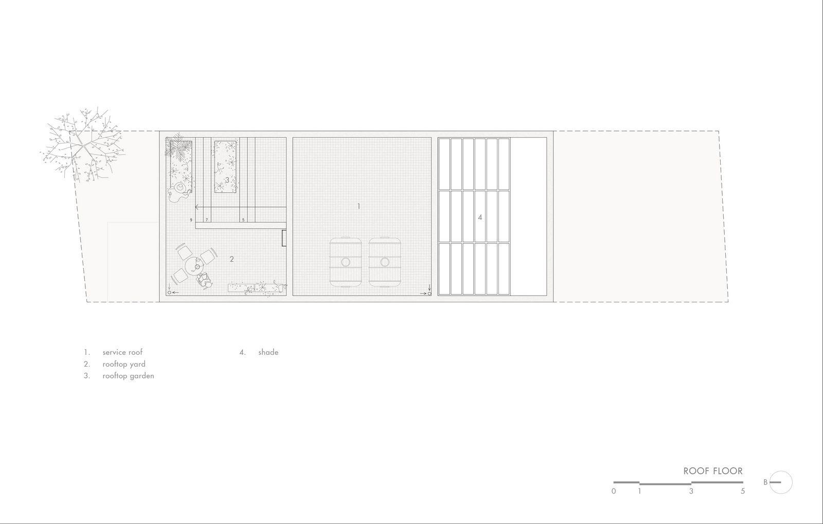 Bằng việc phân bổ các chức năng theo tỉ lệ phù hợp với nhu cầu sử dụng để có một khoảng ban công lùi 3m đủ cho khối sinh hoạt tách ra khỏi ô nhiễm đô thị. Kết hợp với đan cài thêm yếu tố cây xanh là cách mà chúng tôi cải thiện chất lượng sống của chủ nhà.